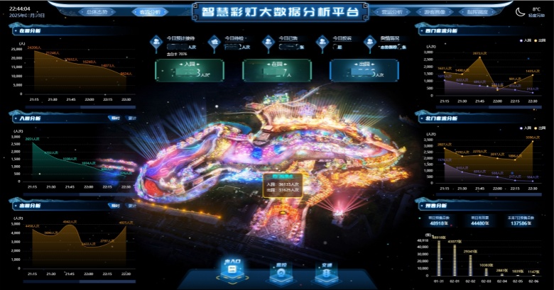 在自貢燈會(huì)的智慧化建設(shè)中,大數(shù)據(jù)分析系統(tǒng)扮演了至關(guān)重要的角色。通過數(shù)據(jù)中心所收集的數(shù)據(jù),景區(qū)管理人員可快速了解園區(qū)內(nèi)實(shí)時(shí)入園、出園、在園數(shù)據(jù)以及快速實(shí)現(xiàn)接待分析、售票數(shù)據(jù)分析、客源地分析、瞬時(shí)客流分析等功能。這些數(shù)據(jù)不僅為景區(qū)的日常運(yùn)營提供了有力支持,還為未來的市場拓展和運(yùn)營決策提供了有力數(shù)據(jù)支撐。