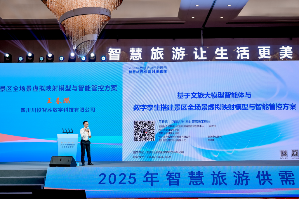 10月28日至29日,由文化和旅游部資源開發(fā)司與江蘇省文化和旅游廳、無錫市人民政府共同主辦的“2025年智慧旅游示范展示活動”在江蘇無錫隆重舉行。作為智慧旅游領(lǐng)域的年度盛會,本次活動以“智慧旅游讓生活更美好”為主題,展示智慧旅游發(fā)展成果,推動示范引領(lǐng)和供需對接,進一步推動《智慧旅游創(chuàng)新發(fā)展行動計劃》落地見效。四川川投智勝數(shù)字科技有限公司(以下簡稱“川投數(shù)科”)憑借“基于文旅大模型智能體與數(shù)字孿生的景區(qū)全場景虛擬映射模型與智能管控方案”,再次驚艷亮相,成為行業(yè)焦點。作為四川能源發(fā)展集團旗下所屬川投信息產(chǎn)業(yè)集團有限公司控股的技術(shù)型領(lǐng)軍企業(yè),川投數(shù)科連續(xù)三年受邀參會,其路演的創(chuàng)新實踐案例獲得了專家團隊高度認可,成為行業(yè)標(biāo)桿案例。